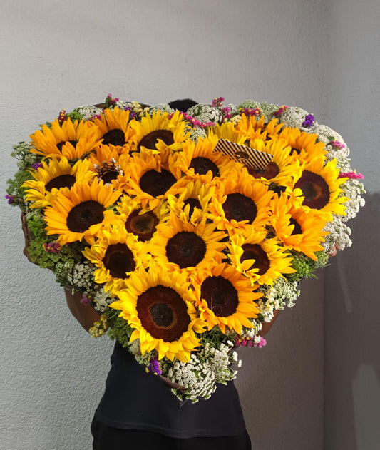 Corazón grande de girasoles